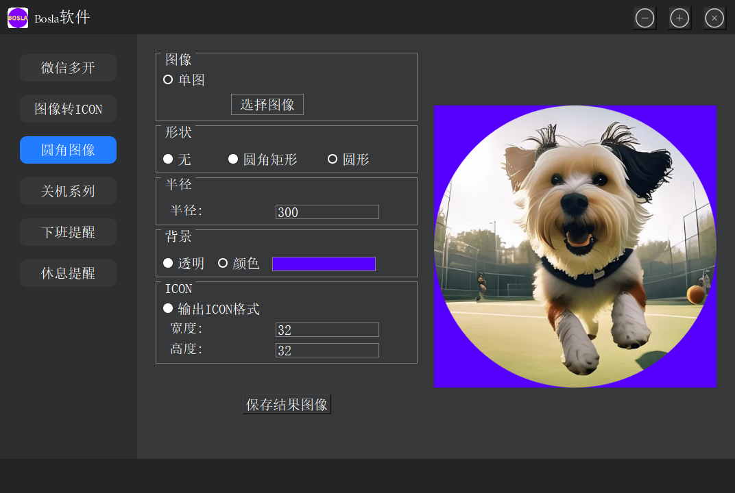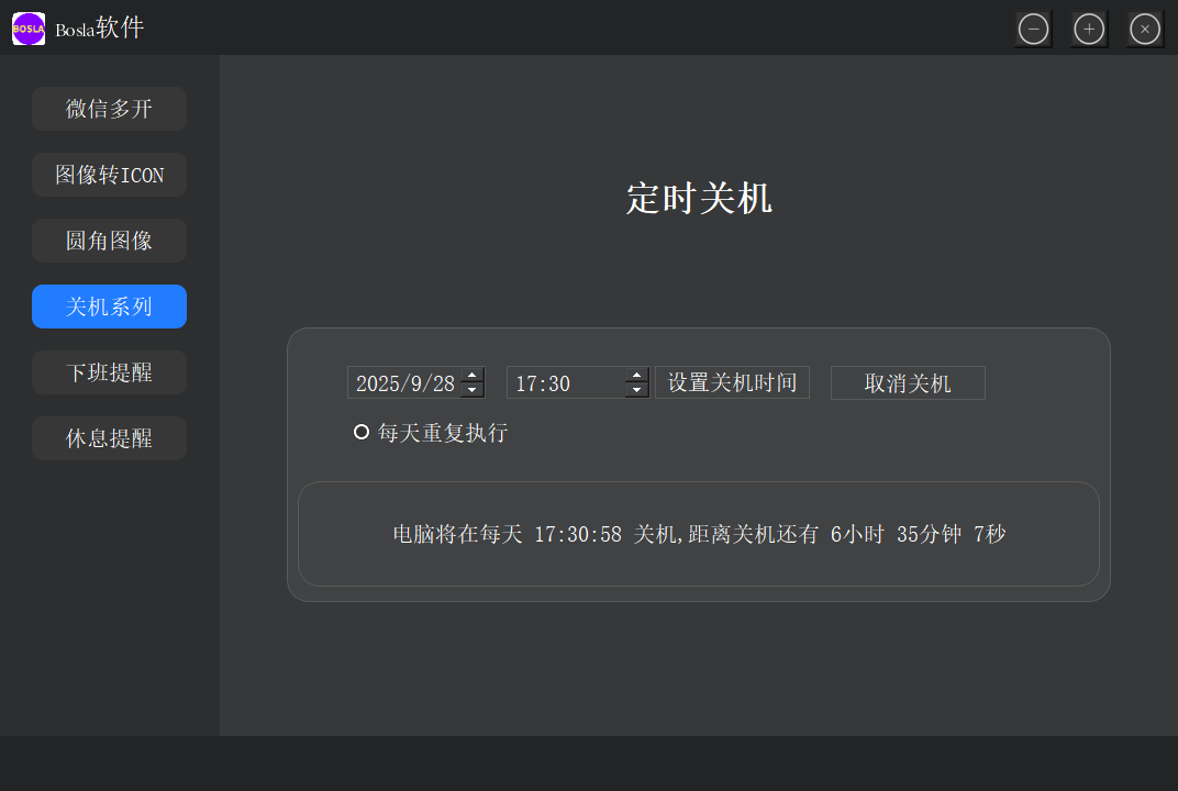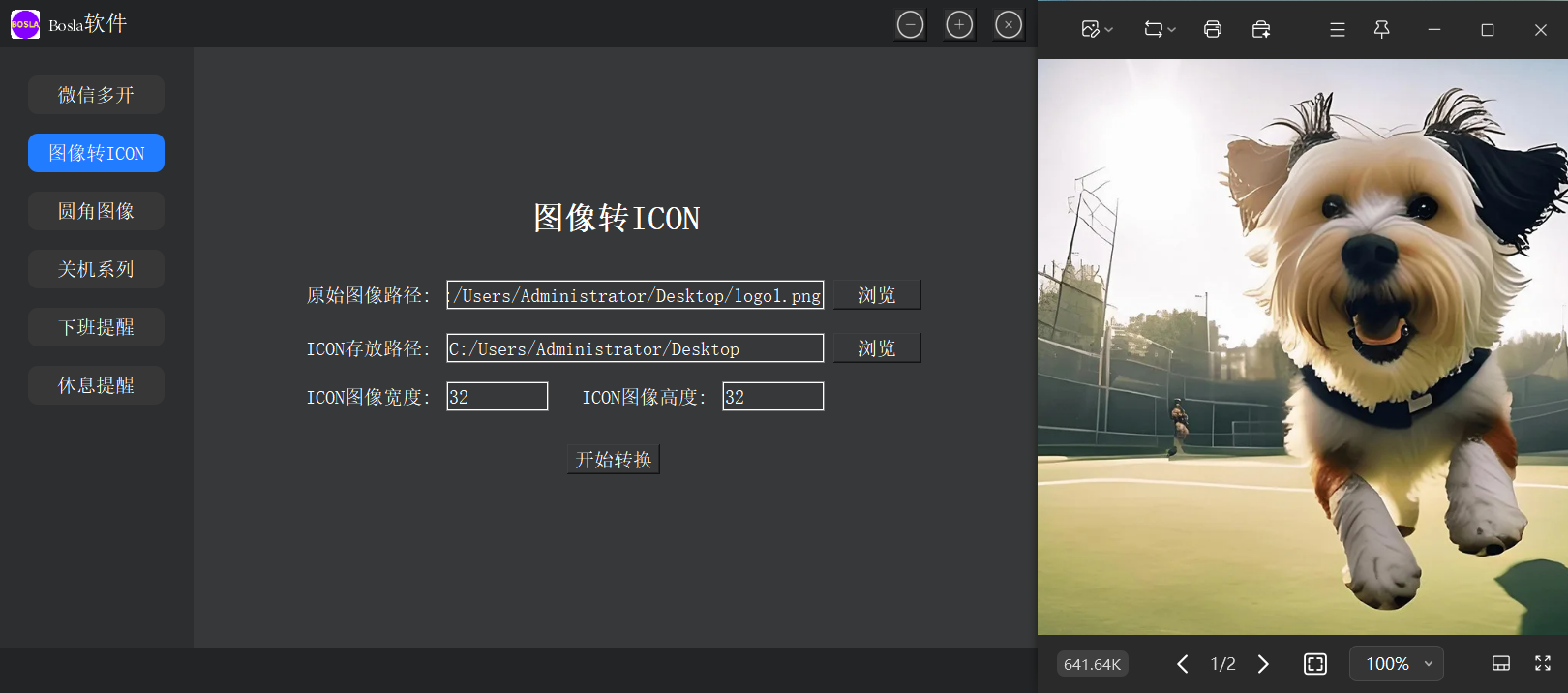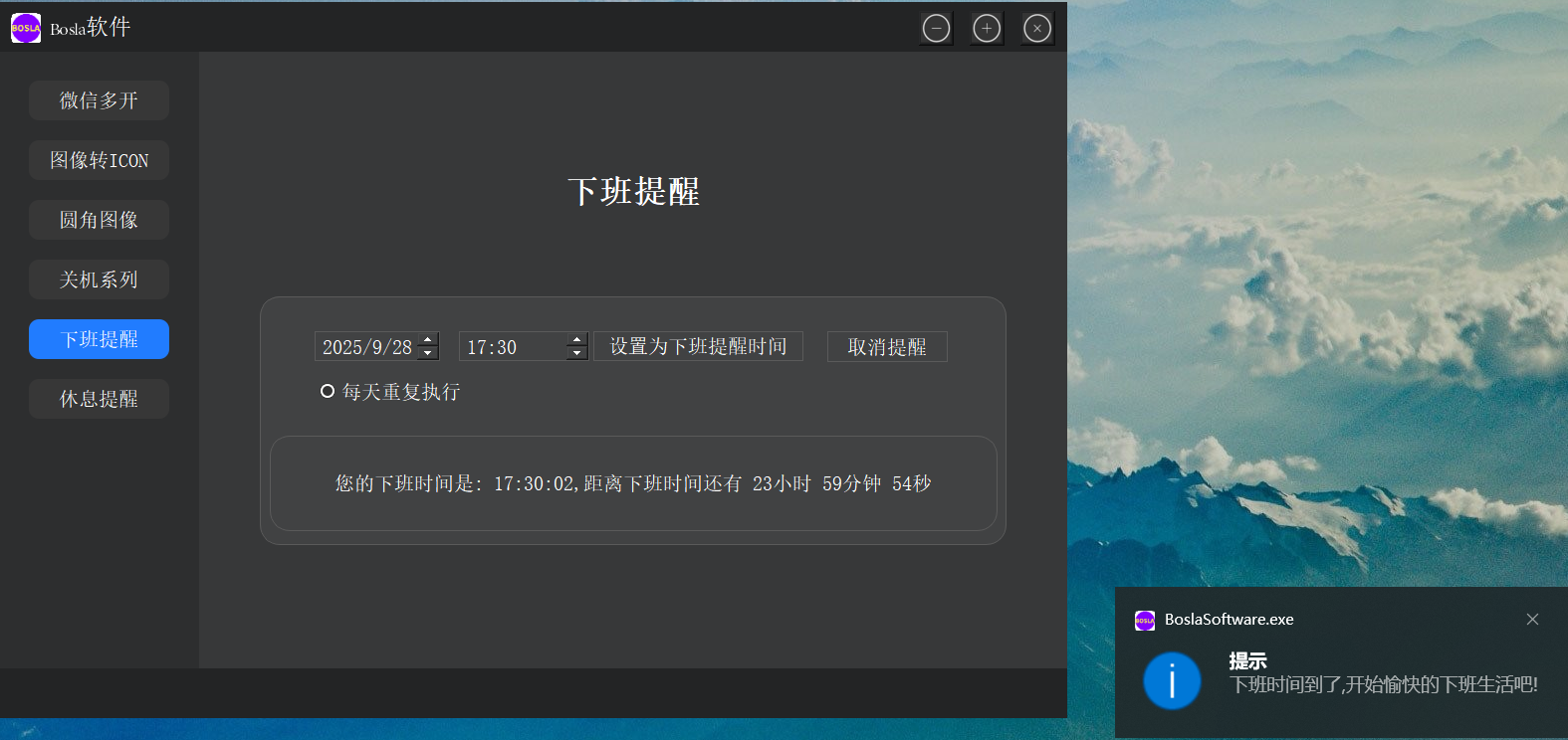一个拥有微信多开,下班提醒,休息提醒,定时关机,圆角头像制作,图像转ICON功能的软件